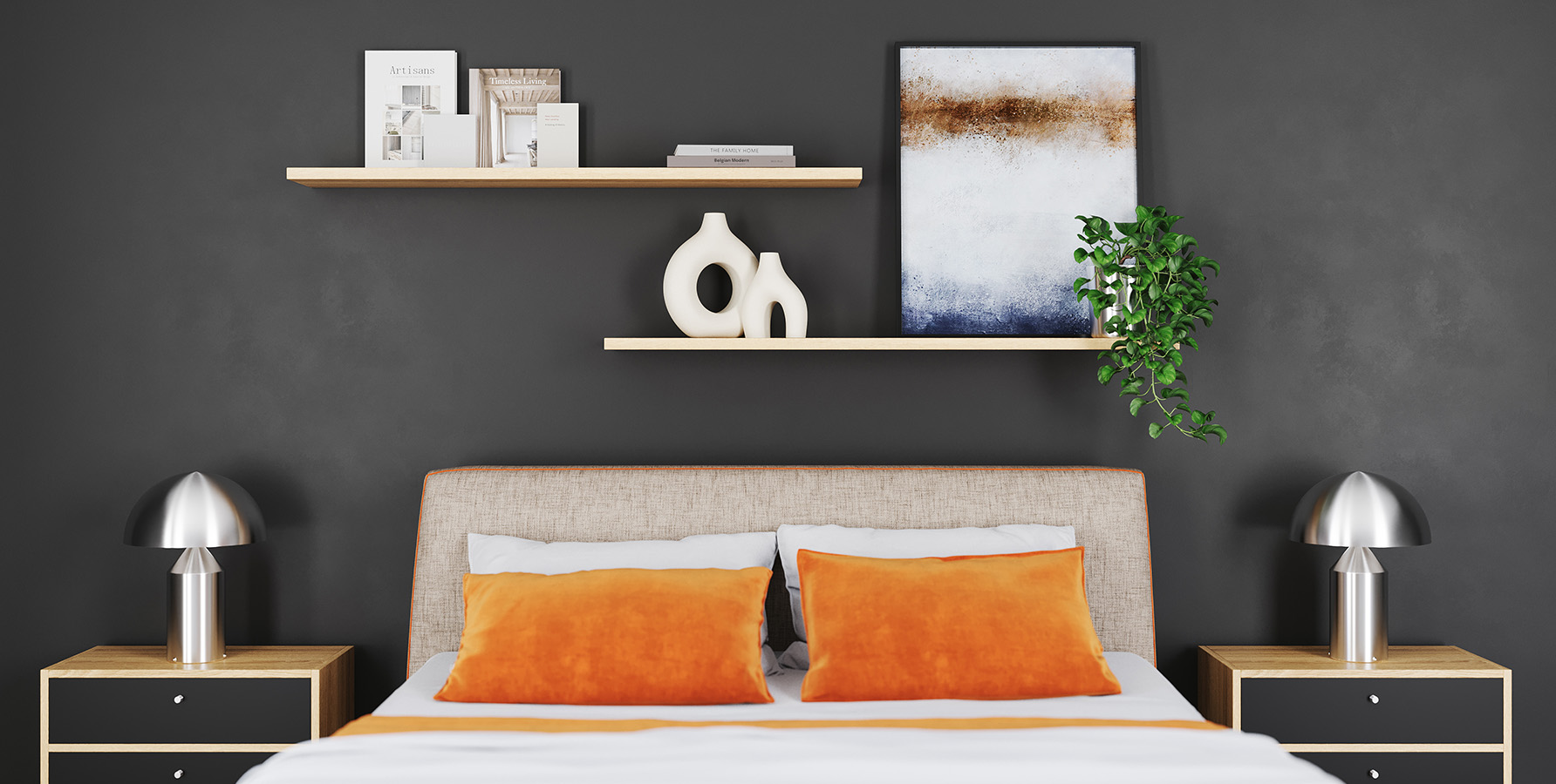 In Schlafzimmern werden häufig warme, ruhige Materialien wie Massivholz (z. B. Eiche oder Buche) oder MDF in sanften Farbtönen gewählt. Beide Varianten sorgen für eine angenehme Atmosphäre und sind langlebig sowie pflegeleicht.