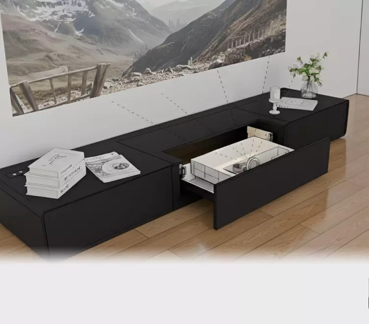 Ein maßgefertigtes Kurzdistanz-Beamer Möbel von Pickawood Schweiz ist die ideale Lösung für moderne Home-Entertainment-Setups. Gemeinsam mit unserer kompetenten Einrichtungsberatung planen Sie ein Möbel, das exakt auf Ihren Raum, Ihren Beamer und Ihre Technik abgestimmt ist. Auf Sonderwunsch integrieren wir eine speziell dafür konzipierte Schublade, die sich perfekt für die Platzierung eines Kurzdistanz-Beamers eignet. So bleibt der Projektionsabstand optimal, während Zubehör und Technik sauber und dezent im Möbel untergebracht sind.