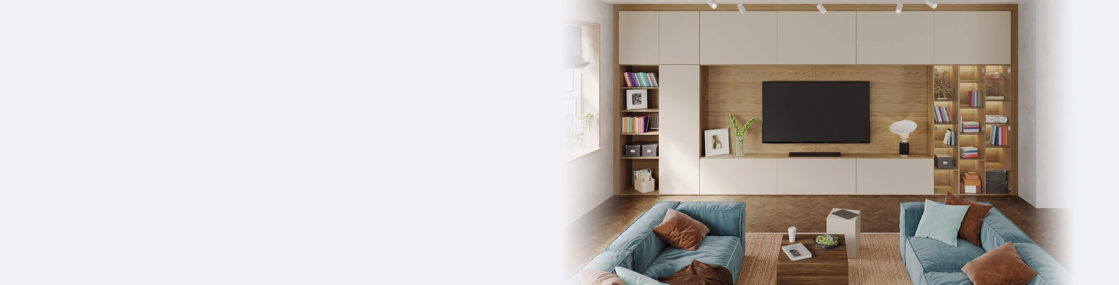 Planifiez le meuble de rangement sur mesure parfaitement adapté à votre aménagement intérieur en direct sur notre configurateur en ligne.